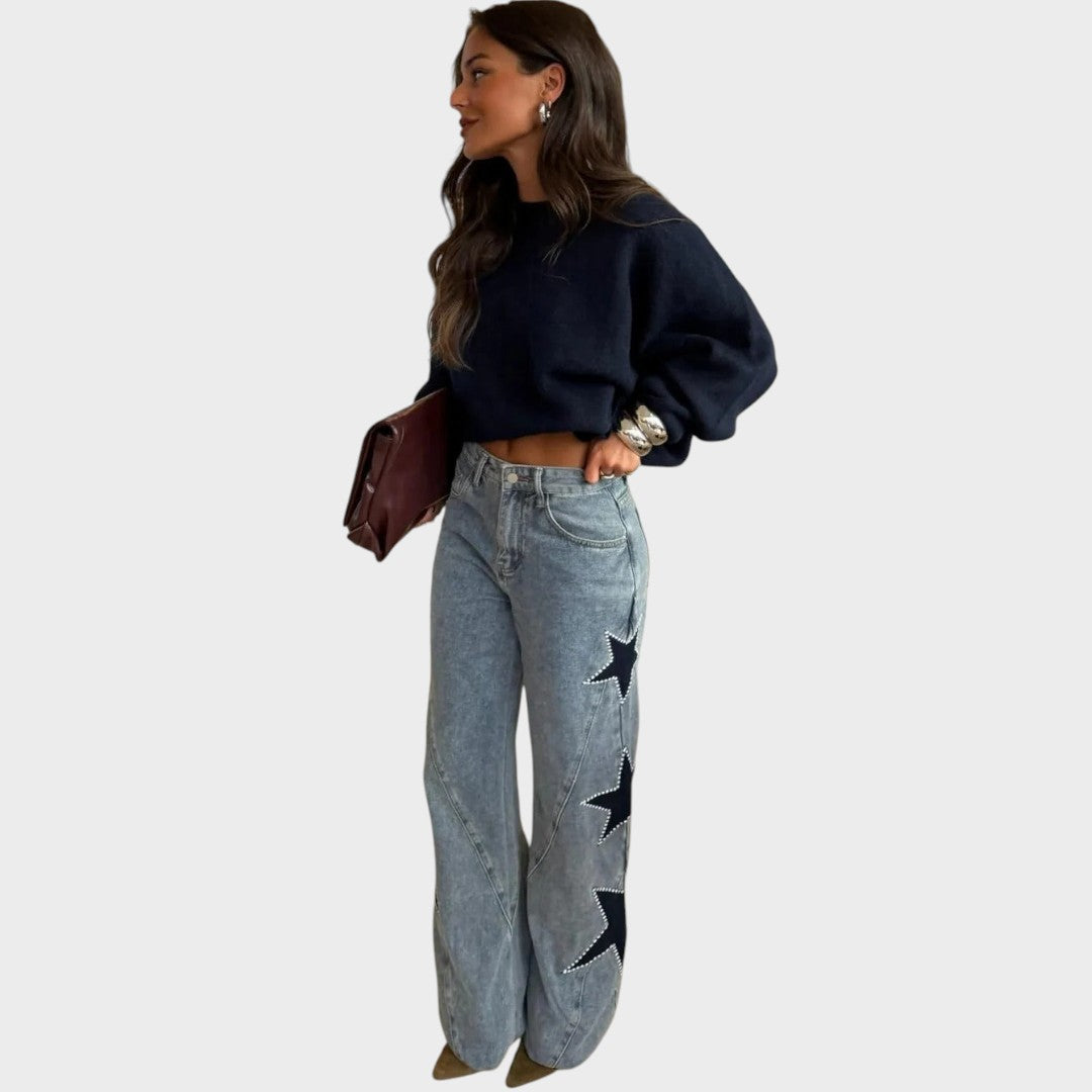 Verina | Pantalón de Pierna Ancha con Brillante